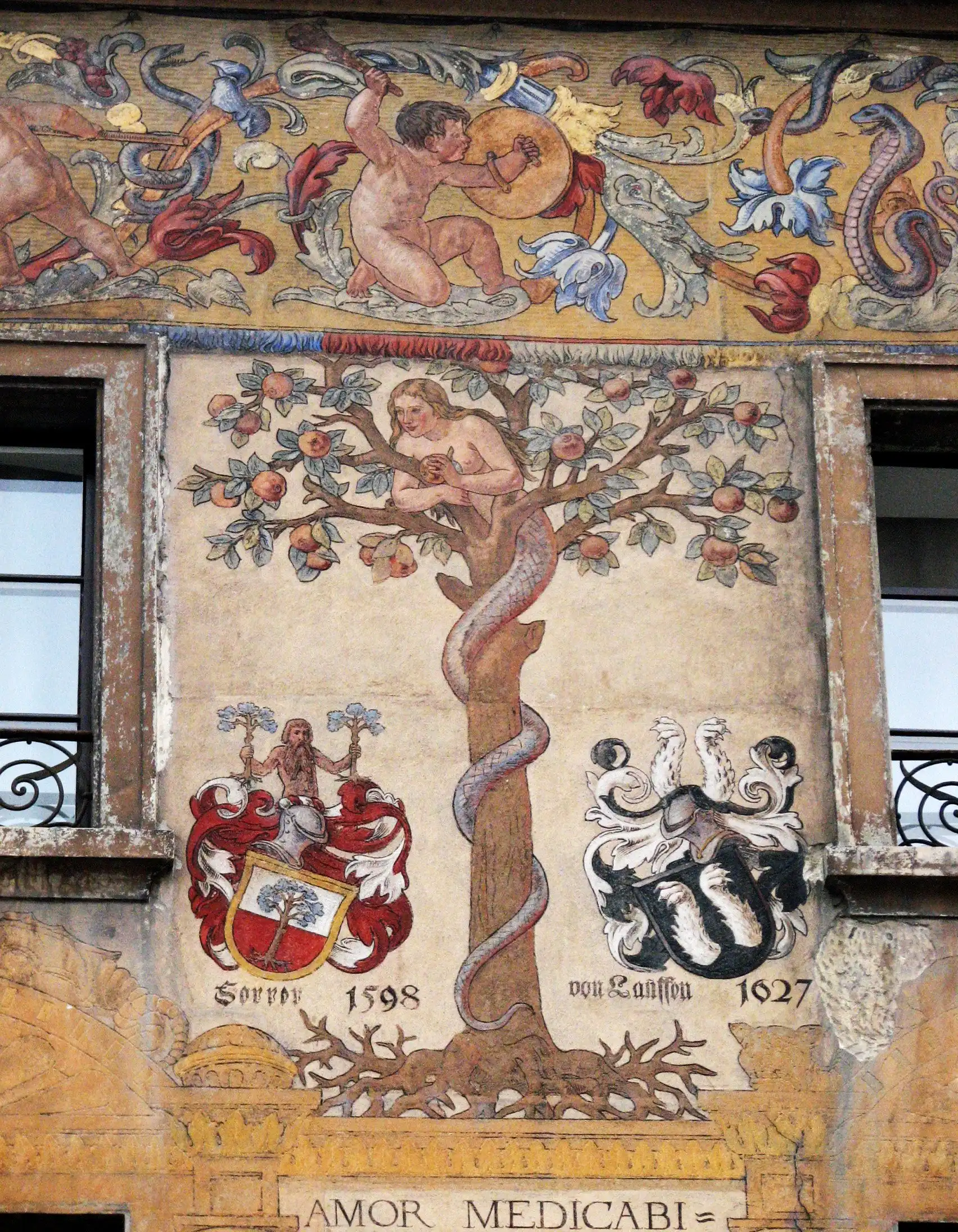 Обычно на фасадах домов хозяева изображали себя, иногда даже писали свои имена и рисовали свои гербы.