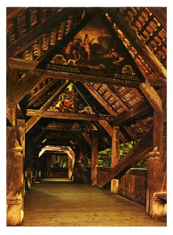 Мост носит имя Капельбрюкке и является самым старым деревянным мостом в Европе, а также символом города. В 1993 году он частично сгорел, но был восстановлен. Большая часть картин, украшающих его, была восстановлена или заменена на копии.