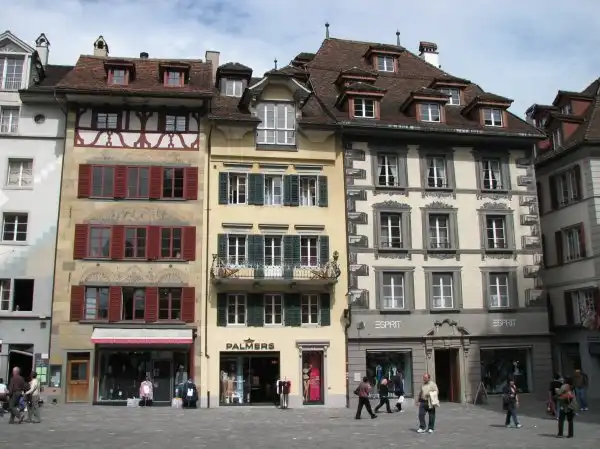 Теперь прогуляемся по самому городу, обращая внимание на красиво расписанные и декорированные фасады домов старого города Люцерна.