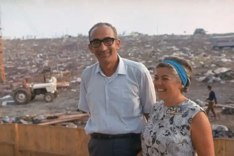 Фермеры Макс и Мириам Ясгур, на земле которых был проведен "Woodstock", на следующий день после окончания фестиваля, 1969 год
