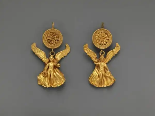Пара греческих сережек с изображением бога любви Эроса, 300 до н. э