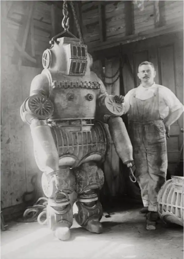 Честер Макдаффи и его запатентованный, 250-килограммовый костюм для ныряния, 1911 год