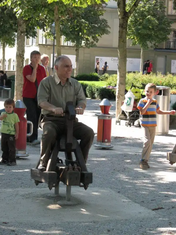 В Берне со мной произошла удивительная история… Устав бродить по городу, так мне захотелось травы покурить… У них это достаточно распространено… Выцепил из толпы парня с дредами, говорю… “Чувак, помоги – где травы у вас купить можно…” “Да тут недалеко на центральной улице лавка есть, ” - говорит… “Смотри направо –не ошибёшься” Пошёл опять по центральной улице искать… и действительно справа в подвале одного из домов в самом центре нашёл… Дух стоит характерный, антураж и товары соответствующие, ребята явно на позитиве… Ну, говорю, коллеги, попал я по правильному адресу. А нельзя ли у вас в лавке травы прикупить? Нет, говорят, нельзя. У нас камера видеонаблюдения стоит…и потому мы травой не торгуем, но щас придёт один чувак, так вот выйдешь с ним, он тебе продаст. А ты посиди у нас пока –пивка конопляного попей… Действительно, через полчаса подвалил с ног до головы татуированный панк с ирокезом, вышли мы с ним на улицу, и он мне полстакана травы за 50 евро отдал… меньше, говорит, не могу… а мне травы на всё остальное путешествие…. Ну нашёл я милый пустынный скверик с памятником отцу-основателю города (на фотке внизу), и стал заколачивать косяки по-американски – в сигарету, а вместо фильтра – скрученная бумажка. С виду потом от обычной сигареты не отличишь… американцы придумали, чтобы законы обходить.