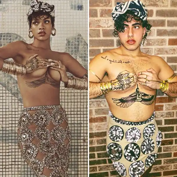 Парень пародирует звёзд Голливуда, используя мешки для мусора и старые шторы