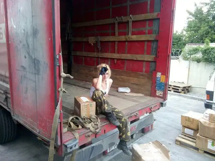 В рядах ополчения Наталья Хим, заместитель председателя общественной организации «Воля народа Донбасса», занимается гуманитарными грузами.