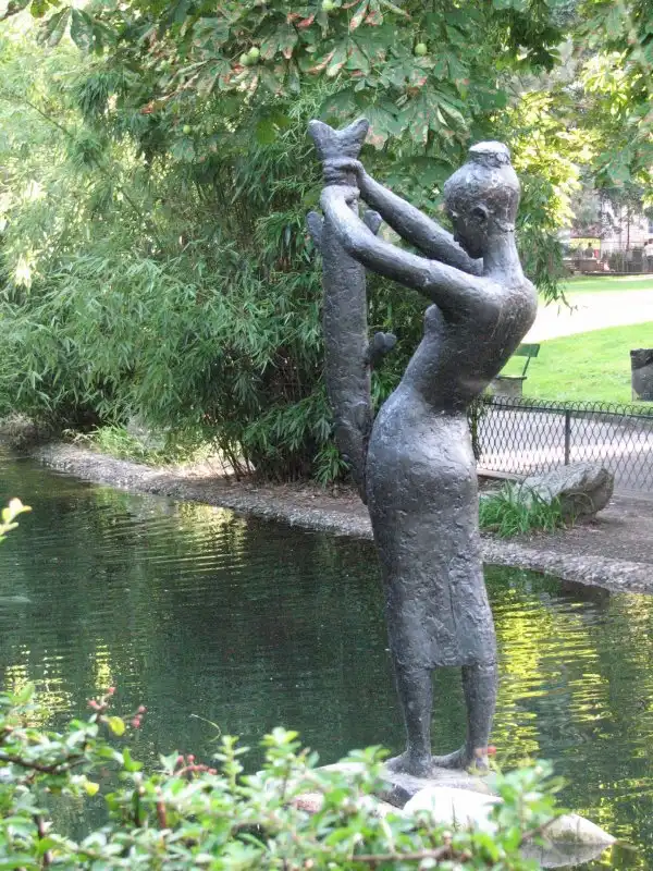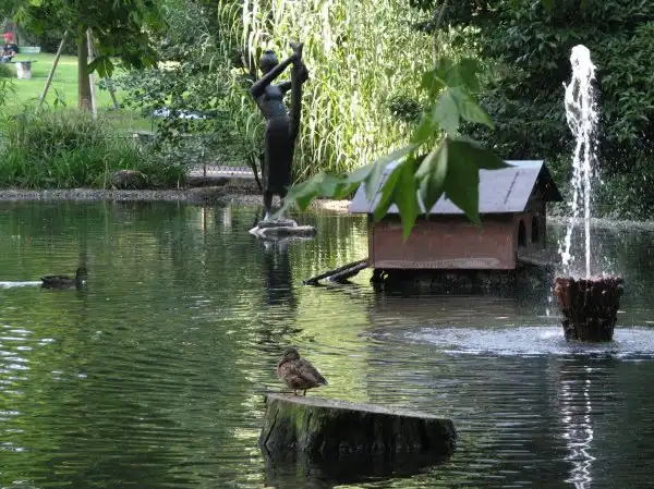 В завершение нашего путешествия прогуляемся по одному из красивых парков с маленьким озером и скульптурой “девушка с рыбой” и фонтанчиком.