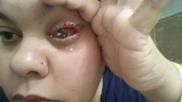 В последнее время на западе модно слать друзьям бомбы с блестками. Открываешь коробку, а оттуда разноцветный фейерверк. Именно так кусочек фольги попал в глаз этой девушке. Разрыв роговицы, инфекция и, как следствие, удаление глаза. Пришлось ставить протез.