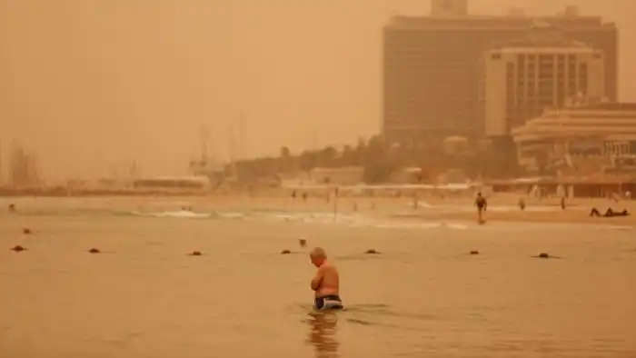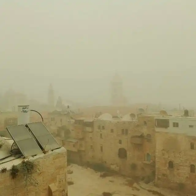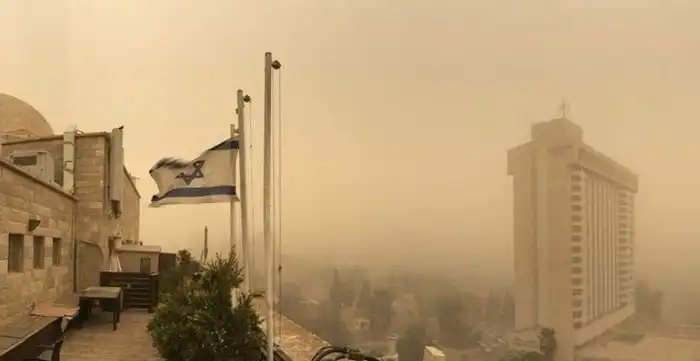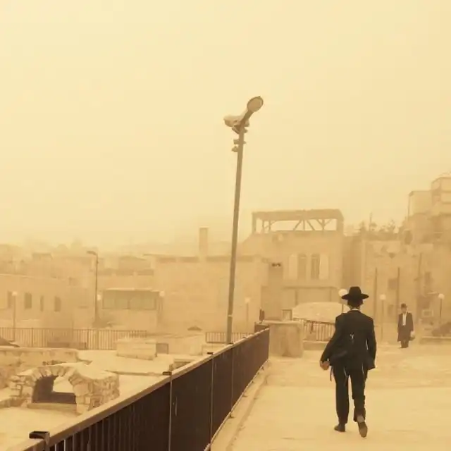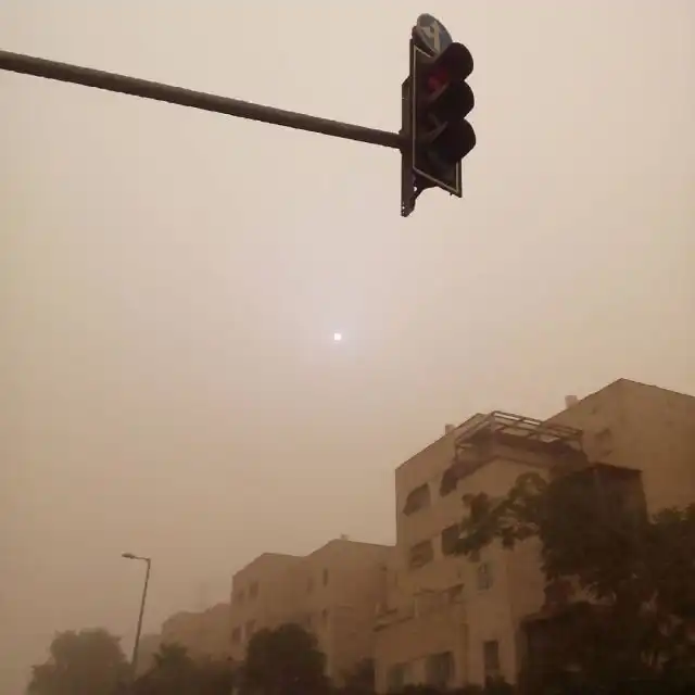 8 сентября на Израиль обрушилась песчаная буря, которая пришла с территории Ирака и Сирии. Наибольший уровень загрязнения воздуха был отмечен в Иерусалиме, Иудее, Галилее и на Голанских высотах. На дорогах резко ухудшилась видимость, поэтому полиция рекомендовала местным жителям ограничить поездки на личном транспорте. Кроме того временно приостановил работу аэропорт Эйлат, а в аэропорту Бен-Гурион были отменены несколько рейсов. Пенсионерам, беременным женщинам, больным астмой и легочными заболеваниями рекомендовали не выходить на улицу. Без особой надобности не рекомендуется покидать дома и остальным жителям, а те, кто все же вышел на улицу сделали вот такие снимки.