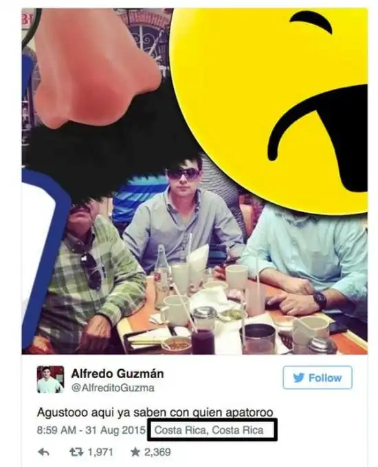 Сын сбежавшего наркобарона Эль Чапо случайно раскрыл местонахождение своего отца, выложив на своей странице в Twitter снимок с геолокацией, на котором он вместе с отцом обедает в ресторане.