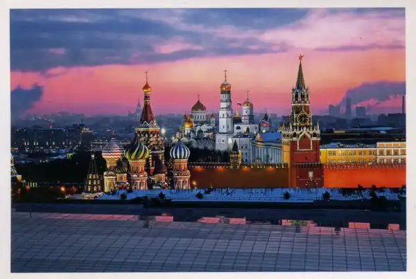 Вид на Кремль, храм Василия Блаженного (собор Покрова Пресвятой Богородицы на Рву) и храм Христа Спасителя.