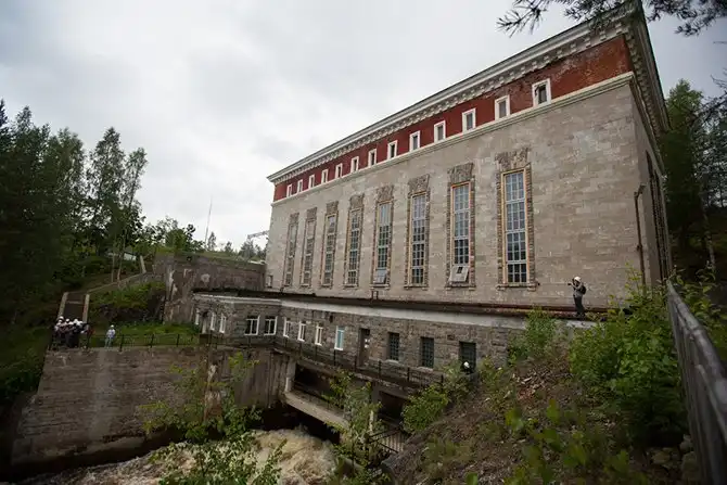 Далее круиз перебрался в Карелию, регион — рекордсмен по абсолютному числу ГЭС. Их здесь 19. Еще один первенец и архитектурный памятник на нашем маршруте — Кондопожская ГЭС. Сложно поверить, что станции, введенные в начале 20-го века, надежно работают до сих пор. Каменная кладка здания сохранилась с момента постройки.