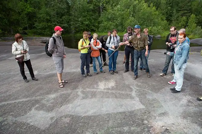 На следующей, Беломорской ГЭС нас ждала, пожалуй, одна из самых интересных культурных достопримечательностей маршрута — карельские петроглифы. До недавнего времени найти петроглифы было невозможно — поиск затрудняли многочисленные протоки реки Выг. Сейчас здание ГЭС служит ориентиром для туристов.