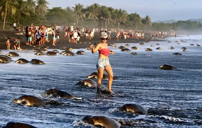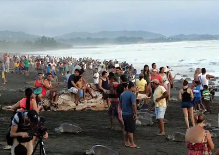 В Коста-Рике большое количество туристов и местных жителей пришли посмотреть на гнездование морских черепах. В этот сезон тысячи рептилий выбираются на берег, чтобы отложить яйца. Туристы больше предпочитают фотографироваться с пресмыкающимися, в то время как местные жители собирают их яйца. Толпа людей пробралась и на территорию местного заповедника, где нарушила откладку яиц оливковых черепах, которые признаны редким видом и находятся на грани исчезновения. Немало обеспокоенных животных вернулось в воду, так и не успев отложить яйца. По данному поводу местные власти начали расследование.
