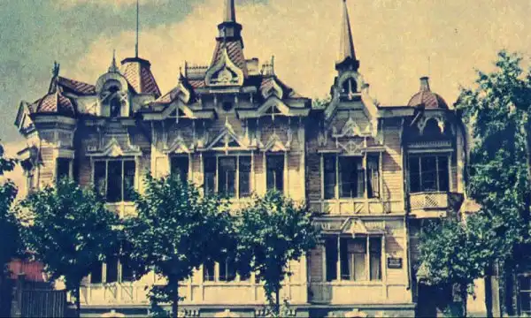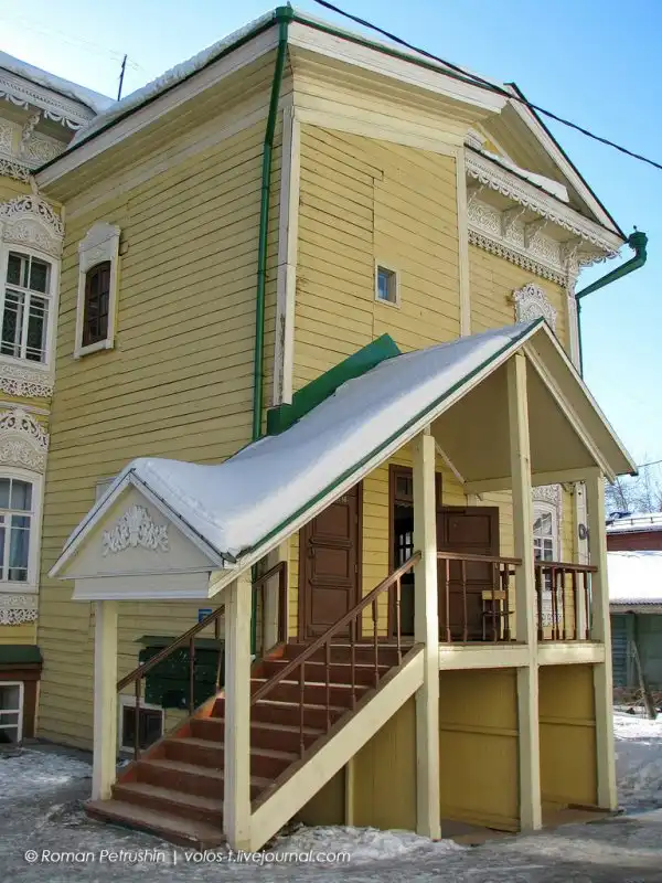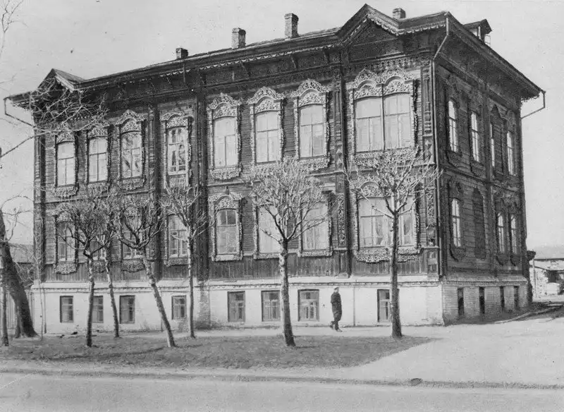 Архитекторы: П.Ф. Федоровский и С.В. Хомич. Мастер-краснодеревщик Степан Незговоров. До революции использовался как доходный дом. В 1911-15гг. в нем снимал жилье выдающийся русский писатель В.Я. Шишков. Здесь он написал своё первое крупное произведение - "Тайга".