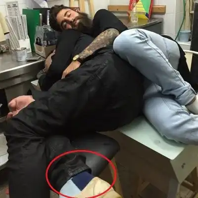 Там уж случилось, что босс всех этих людей очень много пьет и поэтому постоянно засыпает в самый неподходящий момент, в самой неподходящей позе.