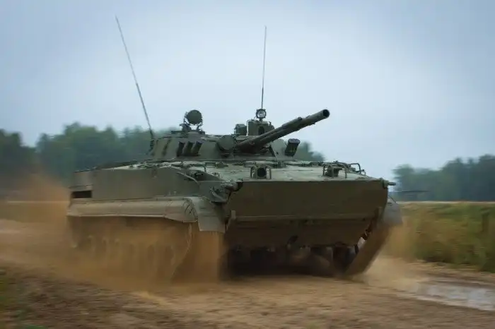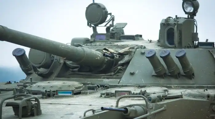 БМП-3 – эдакий прямоугольник на гусеницах с бревном на борту и с башней, ощетинившейся тремя средствами аннигиляции всего ненужного экипажу и командованию: 100 мм пушкой 2А70, 30 мм орудием 2А72 (кстати, тем же стреляет БТР-82А) и 7,62 мм пулеметом ПКТ. Все эти средства уничтожения спарены друг с другом, а довершает картину башни уже, можно сказать, стандартная опция – система отстрела дымовых гранат 902В «Туча».