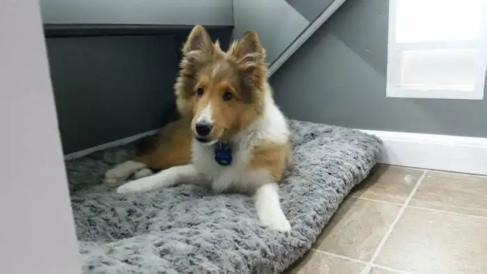 Житель города Честерфилд, штат Миссури, США, Майкл Бизи Барбер (Michael Beezy Barber) построил для своей собаки Кенжи оригинальный домик под лестницей на второй этаж. На пол собачьего домика он положил плитку, постелил матрас, на потолке обустроил светодиодное освещение, а на стены повесил полки, где лежат любимые игрушки Кенжи. При необходимости собаку можно закрыть в ее будке, например, когда к вам придут гости, и не беспокоится о ней, так как Майкл даже предусмотрел окошко для вентиляции.