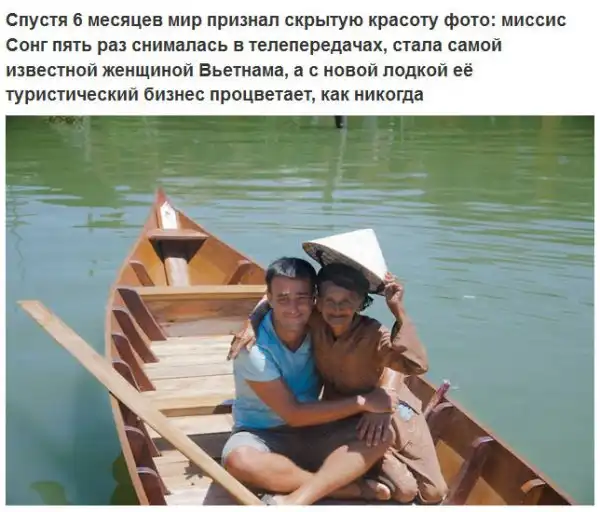 Эта история началась летом 2011 года в Хойане, Вьетнам, куда в туристическую поездку приехал фотограф Реанн, встретивший 74-летнюю Буй Тхи Сонг, зарабатывавшую на жизнь перевозкой туристов на своей старенькой лодке. Парень сфотографировал пожилую женщину, которая впоследствии стала «лицом Вьетнама» и самой известной женщиной этой страны.