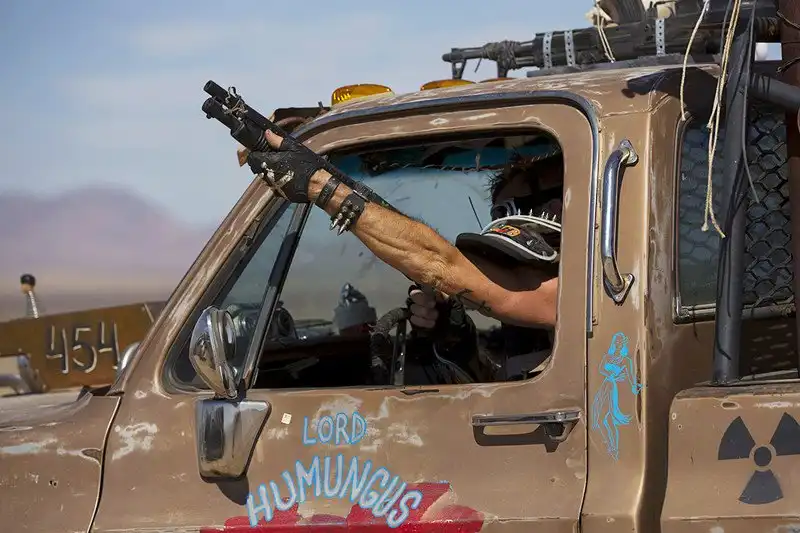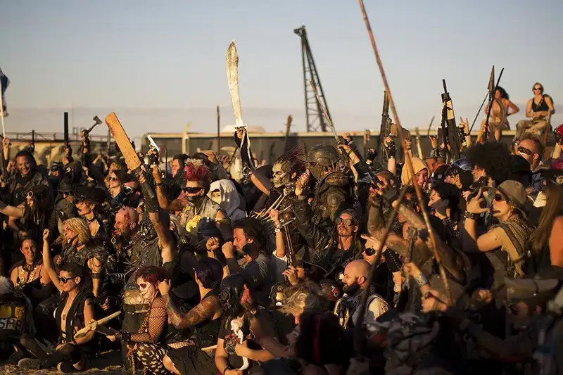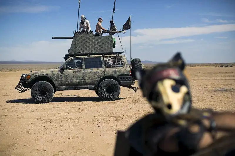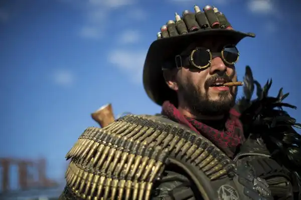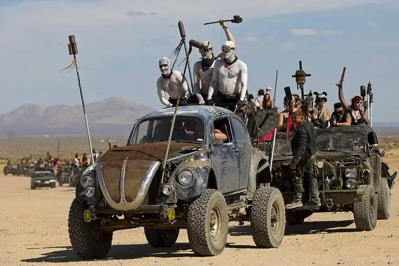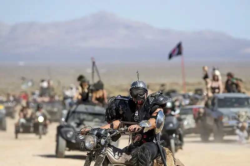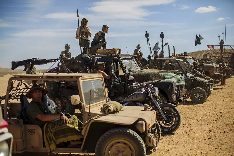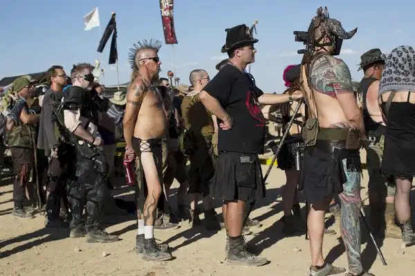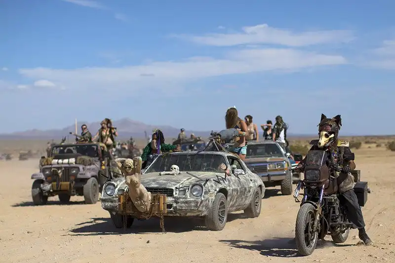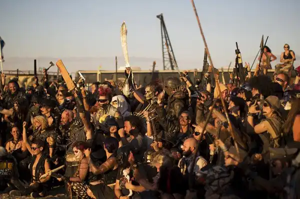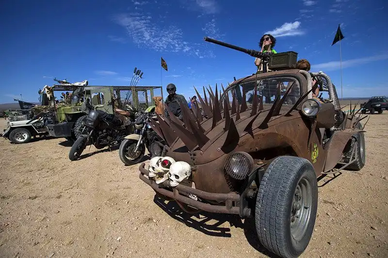 В Южной Калифорнии собрались фанаты фильма «Безумный Макс» для того, чтобы погрузиться на три дня в атмосферу постапокалиптического беззакония и насилия. В мероприятии приняли участие более 700 поклонников этого фантастического фильма и несколько десятков модернизированных автомобилей. Стать «Безумным Максом» может любой желающий при наличии билета и тематического костюма.