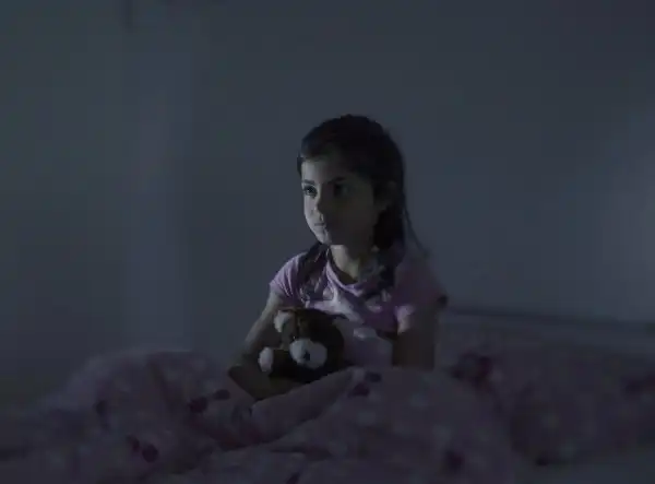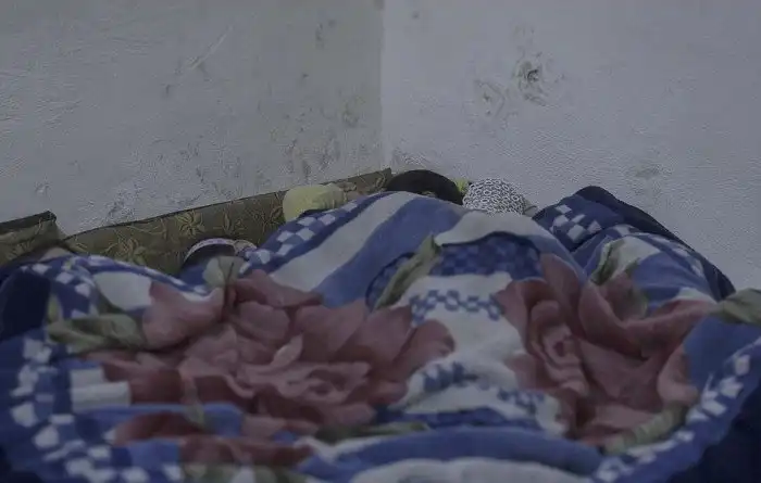 Эстра (11 лет), Эсма (8 лет) и Сидра (6 лет) спят рядом со своей матерью. Сейчас дети живут в Ливане и мечтают увидеть своего отца, который пропал без вести после похищения.