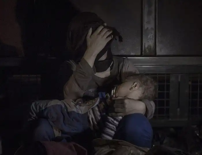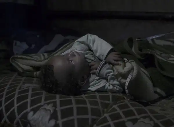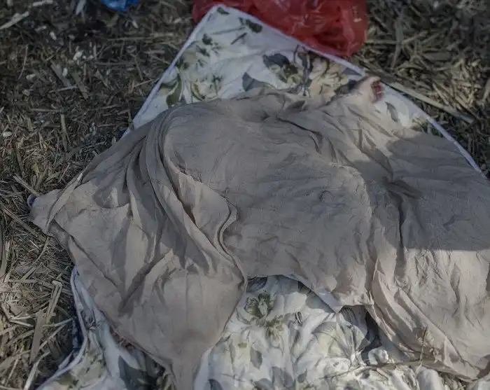 Пятилетний Абдулла спит на грязном матрасе возле вокзала в Белграде. Мальчик стал свидетелем убийства своей сестры в доме его семьи в городе Даръа в Сирии. Мальчик по-прежнему находится в состоянии шока и страдает от ночных кошмаров.
