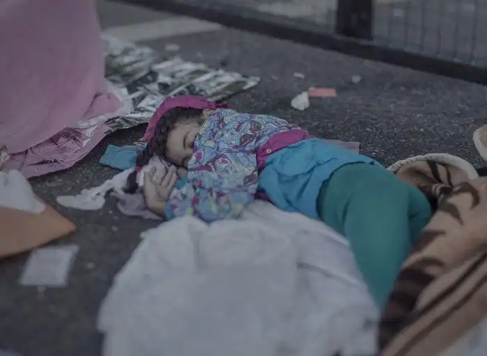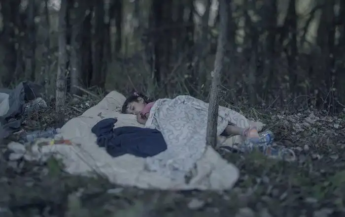 Двухлетняя Джулиана спит в дневное время, потому что ночью её семья пытается пересечь границу Сербии, чтобы попасть в Европу.