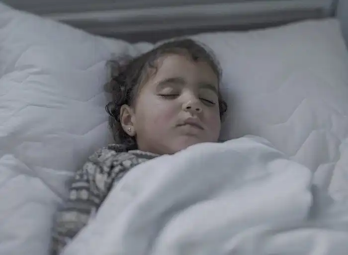 Двухлетняя Иман, болеющая пневмонией и грудной инфекцией, находится в больнице в Иордании. По словам её матери, 19-летней Олы, раньше девочка любила играть в песке и выглядела счастливым ребёнком, а сейчас она спит большую часть дня и ночи.
