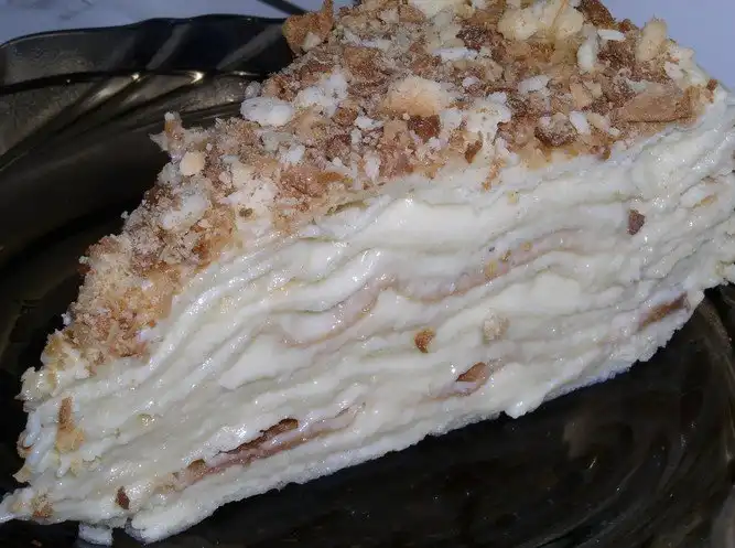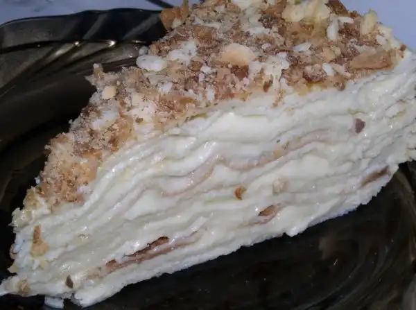 Как приготовить. Предварительно готовили коржи из слоеного теста. Считалось, что чем тоньше они получались и чем больше их использовалось, тем круче, но главный секрет вкуса – это все-таки крем. В СССР использовали заварной. Для него ставили на медленный огонь полтора литра молока, попутно перетирали желтки (8 шт.), сахар (400 г) и пакетик ванильного сахара, потом добавляли 100 граммов муки. Все это надо добавляли в закипевшее к тому времени молоко. Снова доводили до кипения и помешивали до тех пор, пока крем не загустеет. Им тщательно промазывали коржи и ставили в холодильник. Для самого теста требовалось триста граммов сливочного масла, 600 граммов муки, половина столовой ложки уксуса, немного соли, неполный стакан воды и два яйца.