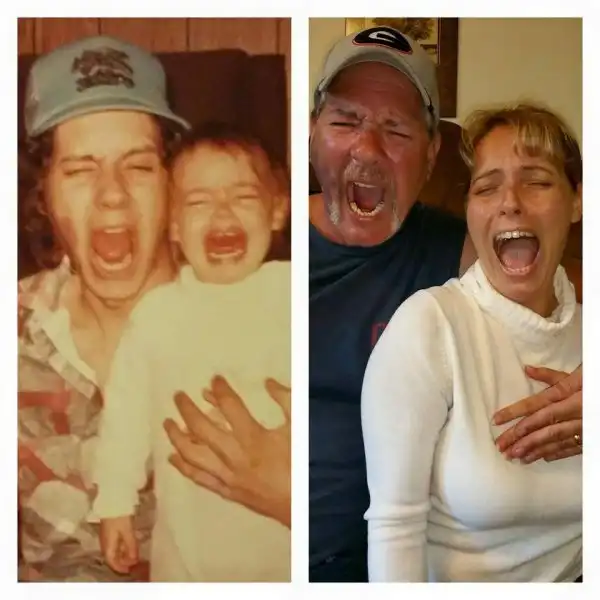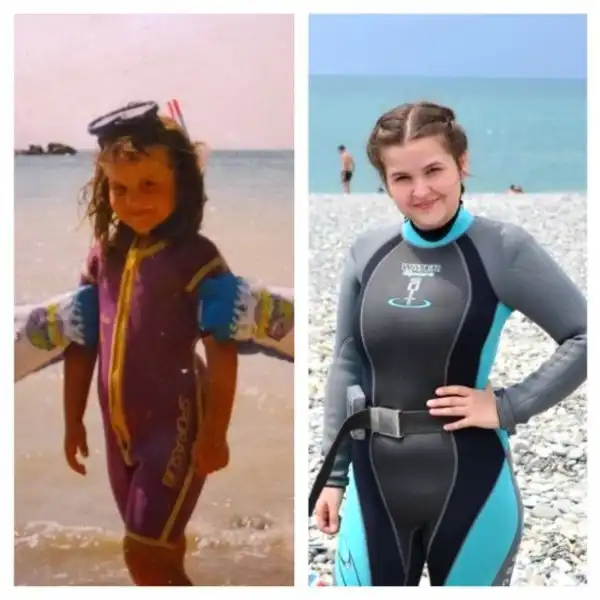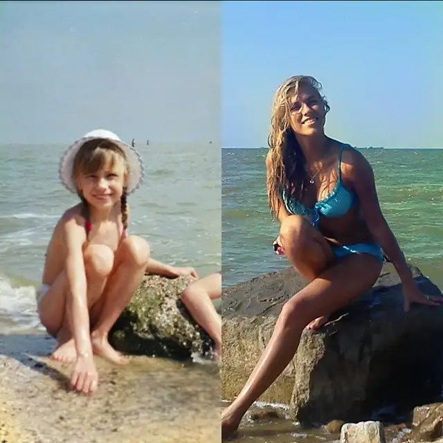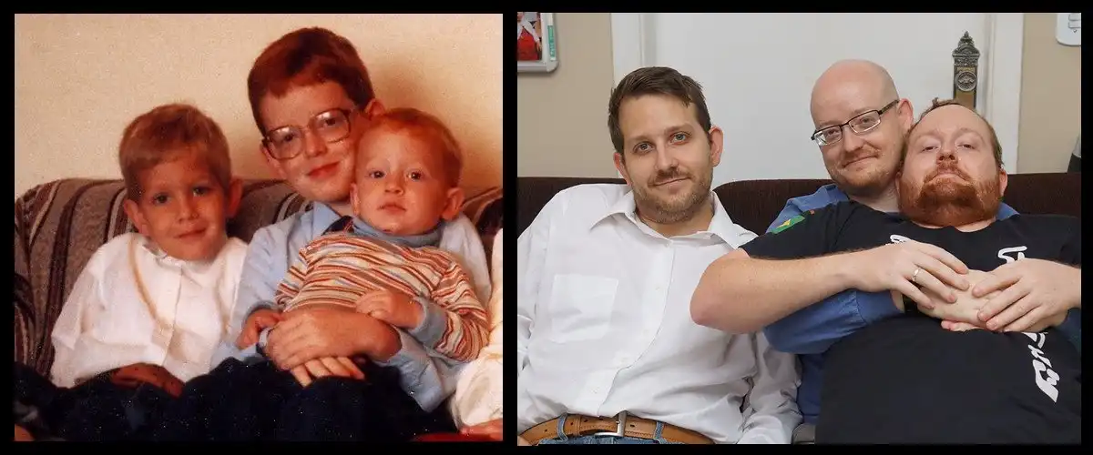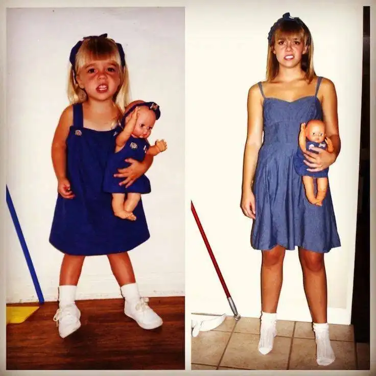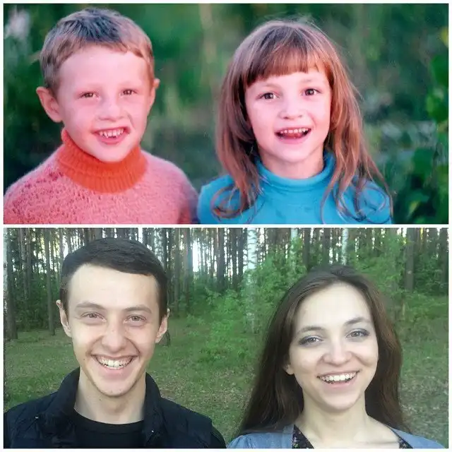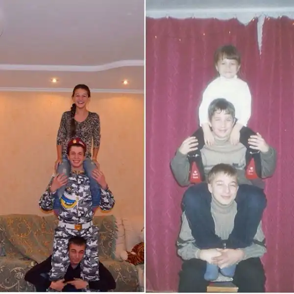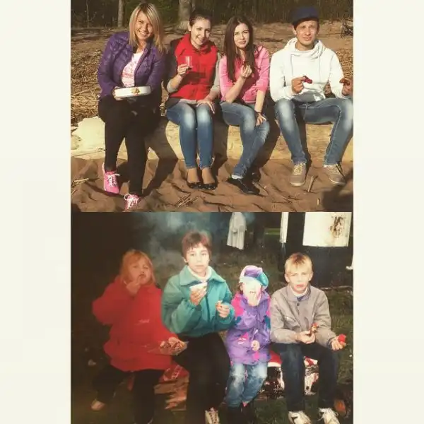 Семьи у всех разные. И детские фотографии у всех тоже разные. Кто-то ползал по ковру, как обычный ребенок, а кто-то играл в «человеческую многоножку». В любом случае, все эти фотографии одних и тех же людей были сделаны в разное время – на одном снимке вы видите главных героев детьми, на другом – уже взрослыми.