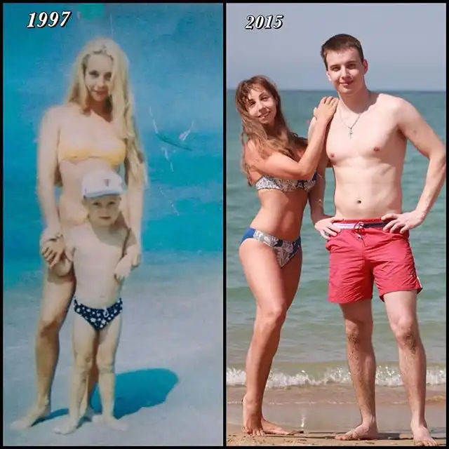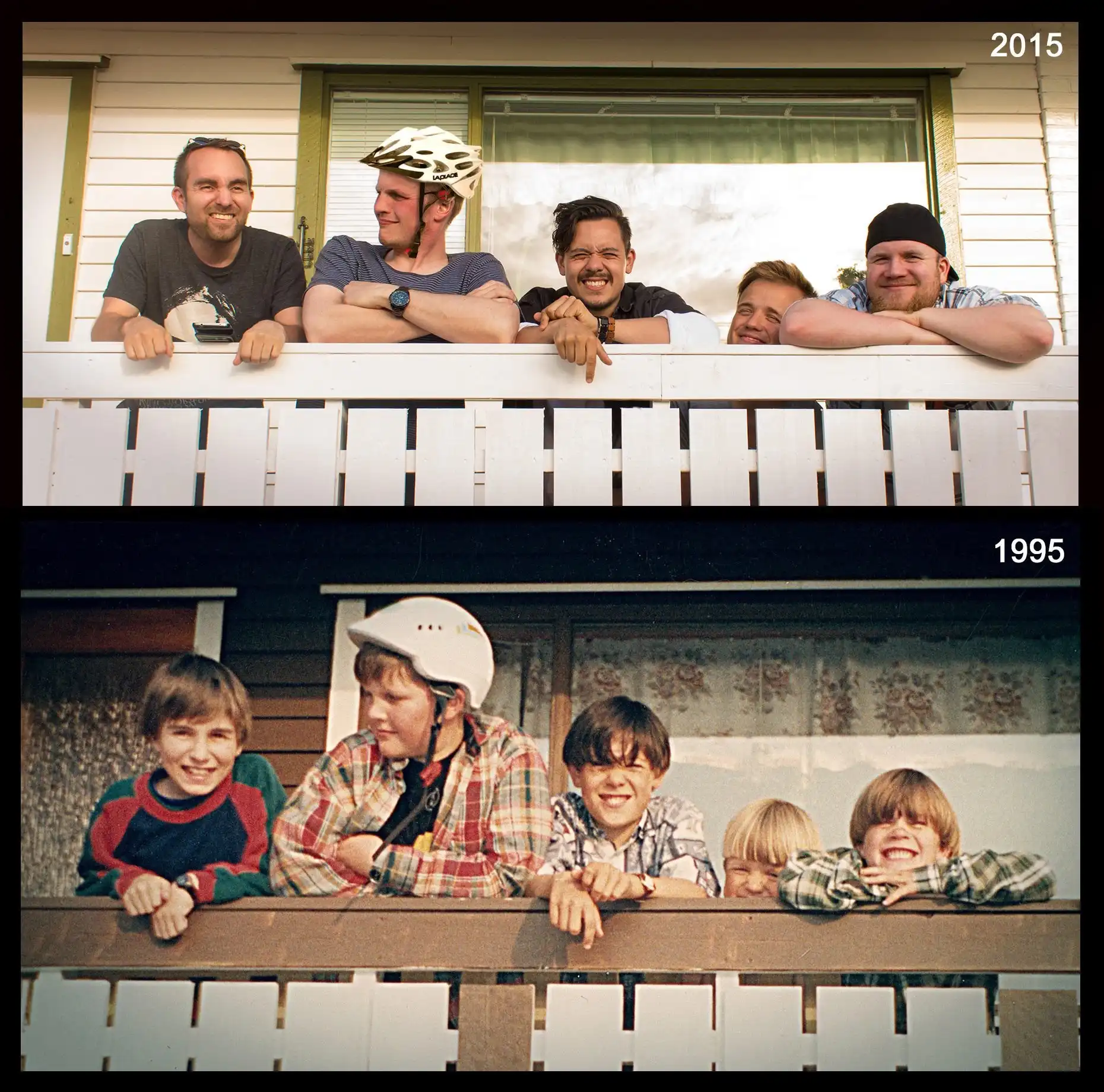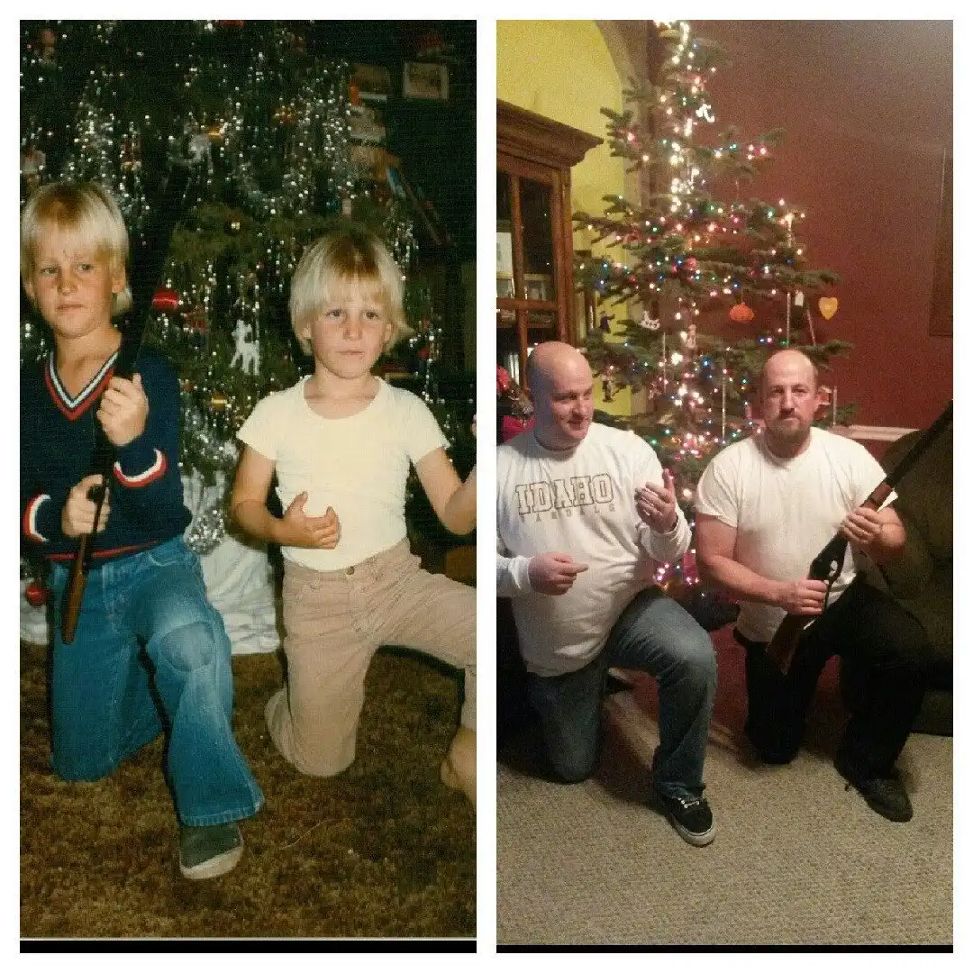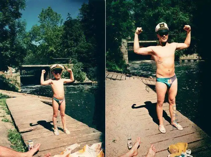 Семьи у всех разные. И детские фотографии у всех тоже разные. Кто-то ползал по ковру, как обычный ребенок, а кто-то играл в «человеческую многоножку». В любом случае, все эти фотографии одних и тех же людей были сделаны в разное время – на одном снимке вы видите главных героев детьми, на другом – уже взрослыми.