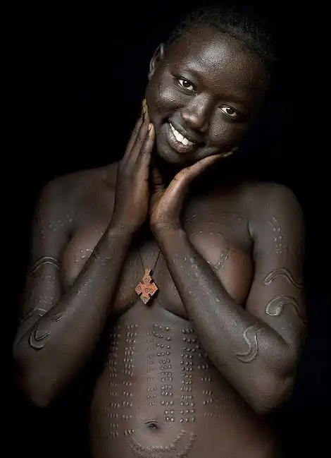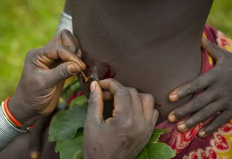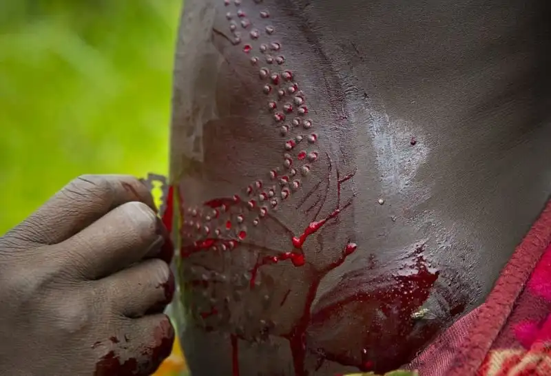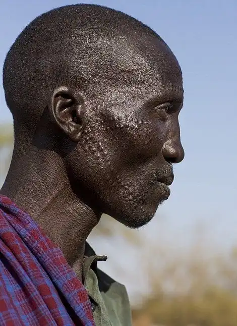 Скарификация распространена не только среди фриков и модификаторов - африканским ритуалам шрамирования не одно столетия. Распространены они в эфиопских племенах боди и сурма, среди нуэров в Южном Судане и карамаджонгов в Уганде. Обычно шрамы наносятся с помощью колючек и лезвия.