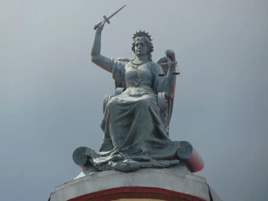 7. На здании окружного суда стоит вот такая статуя: