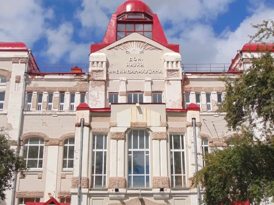 5. Дом наук имени Макушина. Ныне - театр "Скоморох". Косметический ремонт ему не помешал бы, но это не портит общего вида. Здание было построено в 1911 году по проекту архитектора А.Д.Крячкова на средства известного в то время сибирского предпринимателя П.И.Макушина.
