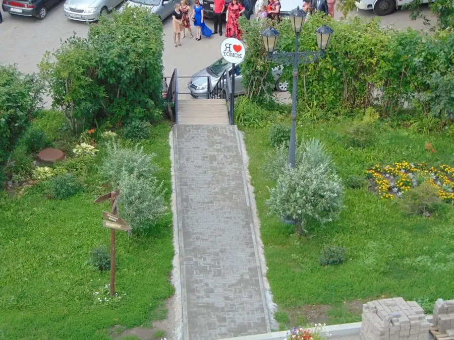38. И рядом есть удобная пешеходная дорога с интересными встроенными скамеечками.