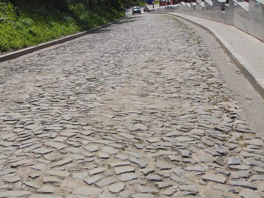 36. Спустившись с вышки и выйдя из музея, мы пошли вниз к центру по дороге, полностью вымощенной булыжником.