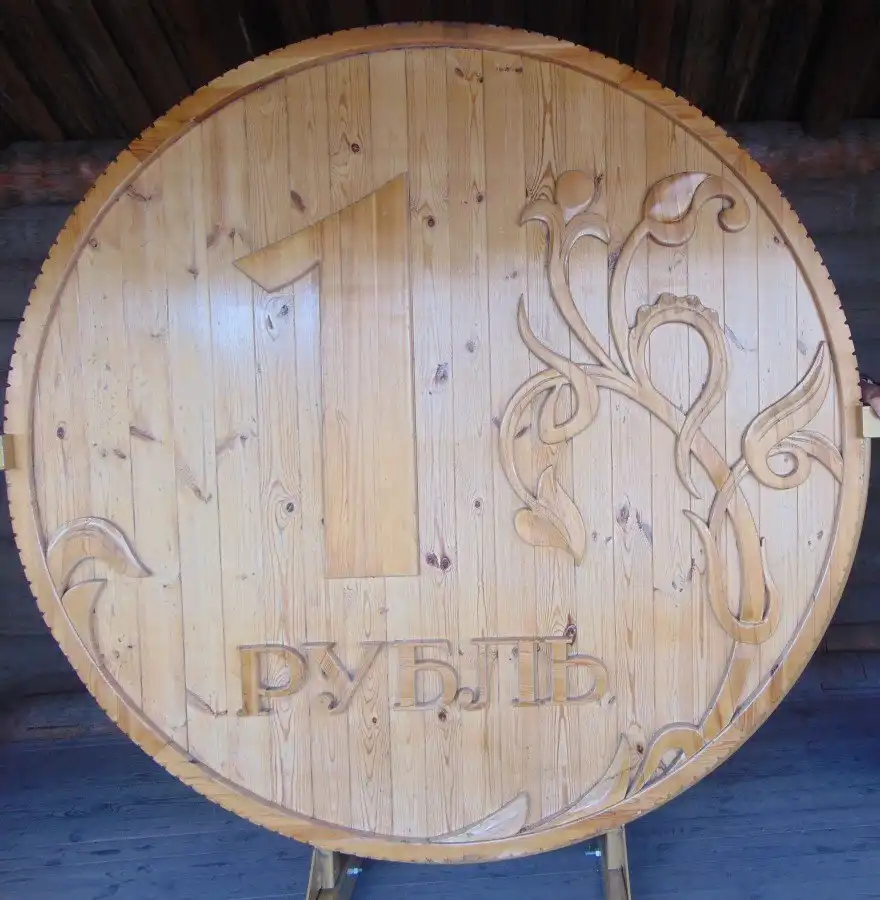 21. Памятник рублю — деревянный рубль массой 250 килограммов и высотой более двух метров. Выполнен в реалистичной манере в масштабе 100:1. Раньше он находился на площади Новособорной. Сейчас стоит в томской крепости. Помещен в книгу рекордов Гиннеса, как самый большой рубль в мире.