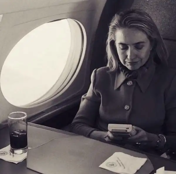 Хиллари Клинтон играет в Гейм Бой на борту самолёта, 1993 год
