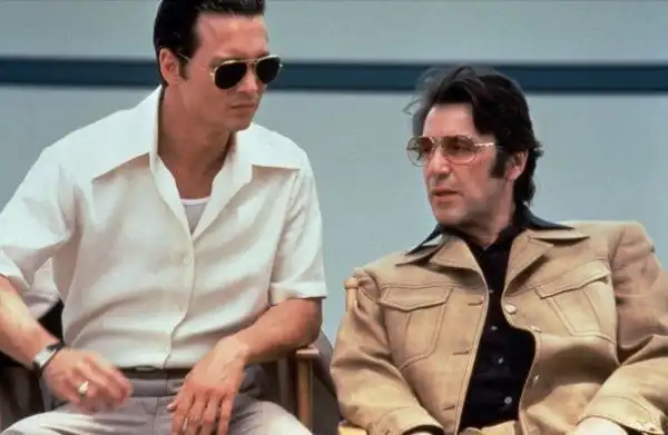 Джони Депп и Аль Пачино на съемках фильма "Донни Браско", 1997 г.