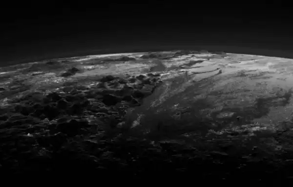 Закат на Плутоне, снятый с межпланетной станции New Horizons с расстояния 18 тыс. км. 14 июля 2015 года