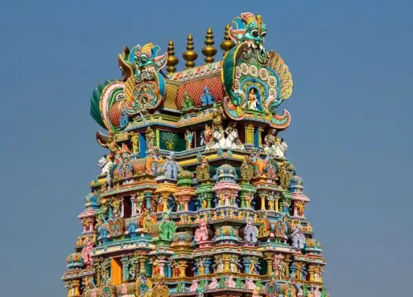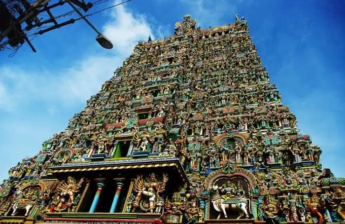 В самом центре города Мадурай, что находится в индийском штате Тамилнад, расположен величественный храм Минакши, построенный в честь трехгрудой богини Минакши, одной из жен бога Шивы. Храм был возведен еще в древности, однако, в XIII веке во время завоевания Индии мусульманами его практически полностью разрушили, Восстановили храм в конце XIV века. Величественный архитектурный комплекс состоит из нескольких башен, часть из которых находится внутри храма. Каждая из башен украшена множеством скульптур с яркой окраской. Скульптуры изображают богов и богинь, жрецов и музыкантов, мужчин и женщин, а также животных. В общей сложности на всех башнях насчитывается около 33 000 скульптур, причем ни одна из них не похожа на другую.