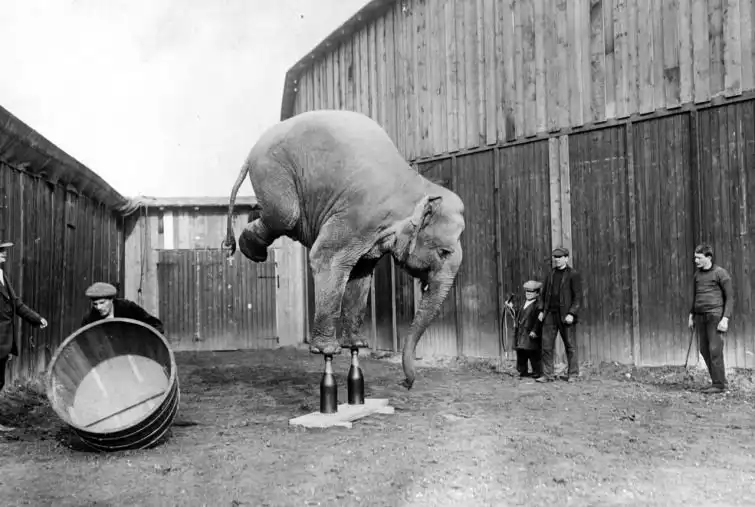 Американский циркач Александр Пэтти спрыгивает по ступенькам вниз головой во время выполнения трюка, 1908 год