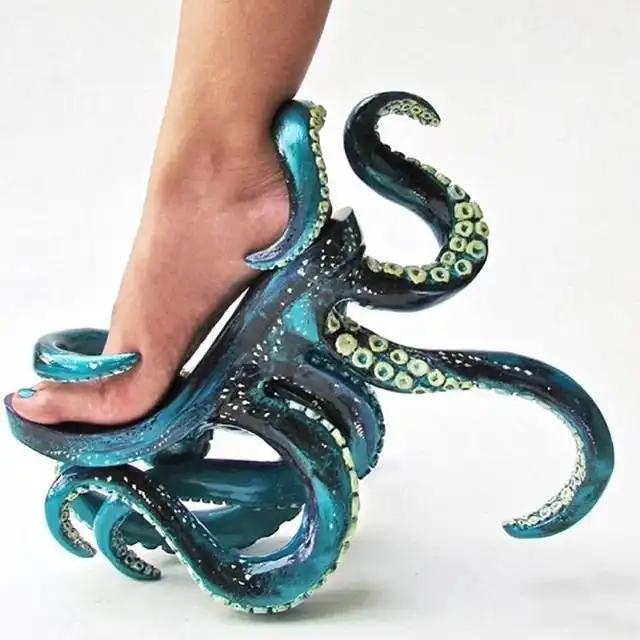 Тех, кто придумал эту обувь, с радостью приняли бы средневековые инквизиторы. Что такое "испанский сапожок" - детский лепет- по сравнению с буйными фантазиями современных обувщиков. Говорят, что во время примерки ни одна девушка не пострадала, потому что не смогла сделать и шагу.