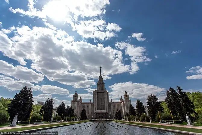 Находясь в Москве, я узнал историю создания университета, заглянул внутрь главного здания, познакомился с любопытными фактами, увидел аудитории, поснимал виды c 32-этажной сталинской высотки и пообедал в студенческой столовой МГУ…