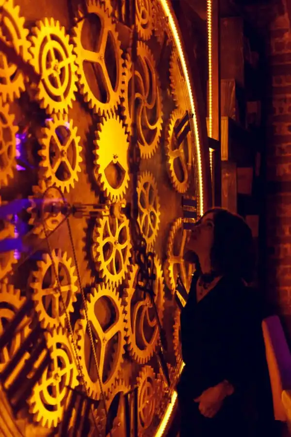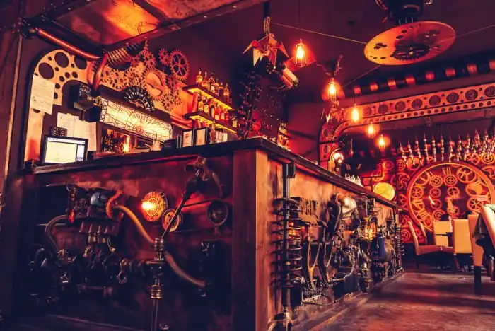 В румынском городе Клуж-Напока открылся стимпанк-бар, на оформление которого у дизайнеров Золтана Зеленяка и Александра Тохотана ушло 2 года. Интерьер заведения выполнен так, что у посетителей складывается впечатления, что они находятся внутри гигантских часов и даже являются их частью. Внутри бара куча шестеренок, различные маятники, сложные системы механических приводов и многое другое. Особым украшением стимпанк-бара является робот, который крутит педали.