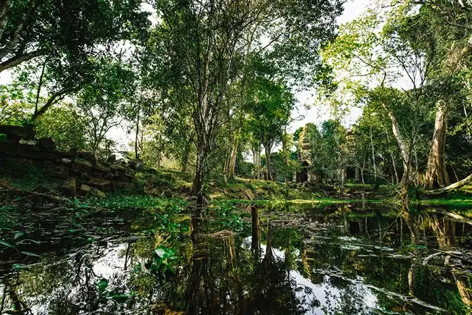 Храмовый комплекс Бантеайсрей у подножья горы Пном Дай в 25 км к северо-востоку от основной группы храмов Ангкора. Храм посвящён индуистскому богу Шиве