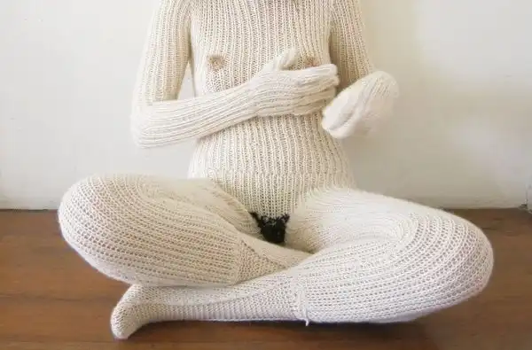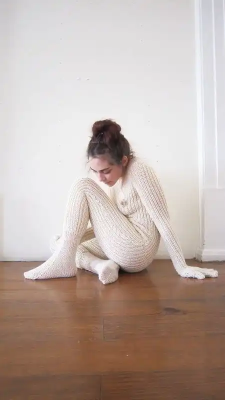 Нудистам зимой приходится нелегко. Хочешь походить по квартире в чем мать родила, а больно уж холодно. Для барышень, которые не привыкли носить традиционную одежду и предназначен этот вязаный костюм во весь рост.