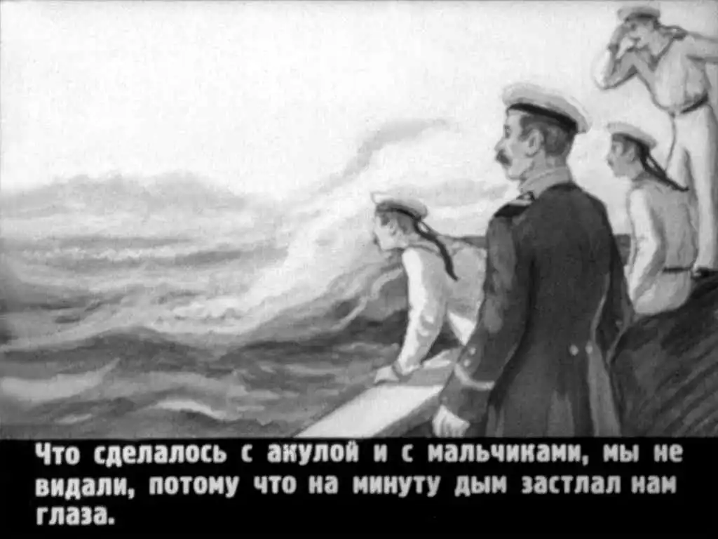 В реальности все эти действия очень долго выполняются (спуск шлюпки,выстрел из пушки тоже нельзя так быстро сделать)..оставалась бы призрачная надежда,что акула отказалась есть русского мальчика,предпочитая лакомится только африканскими.