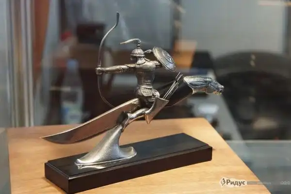 Особенностью выставки «Клинок» является то, что практически каждое представленное на ней изделие является, по меньшей мере, произведением кузнечного искусства, а то и просто уникальным артефактом, не имеющим аналогов в мире. Как, например, произведения ювелира-оружейника, участника международных и всероссийских выставок, члена Союза Художников России Жигжита Баясхаланова. Мастер из Бурятии выставил коллекцию изделий, включающую в себя ножи с элегантнейше выполненными рукоятками, представляющими стилизованные изображения голов животных. Настоящим шедевром является одна из его самых известных работ — нож «Лучник», выполненный в форме сидящего в седле и стреляющего из лука восточного воина.
