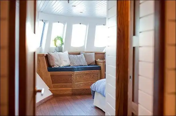 В центральной части Стокгольма пришвартована старая баржа, которая стоит на воде с 1909 года.Судно было выкуплено и переделано в современный жилой дом с площадью в 150 квадратных метров.Отличная задумка!
