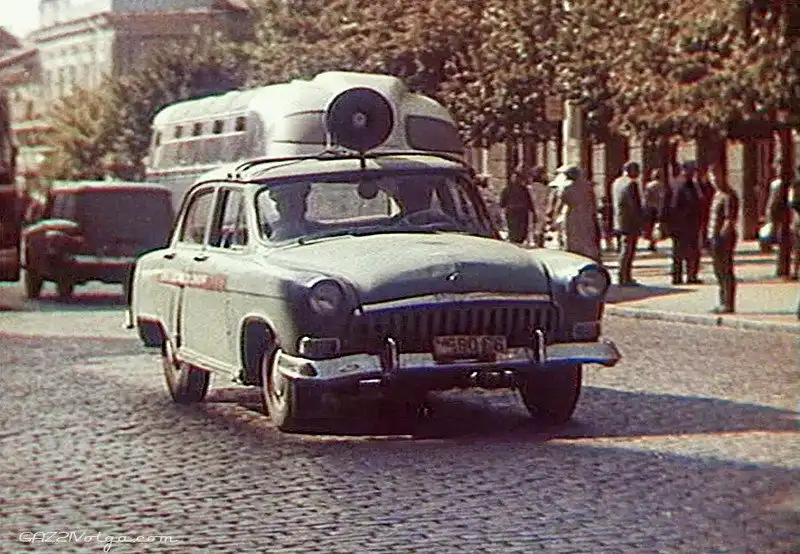 До 1953 года милицейские машины не имели спецраскраски, только громкоговоритель на крыше. Потом была принята расцветка тёмно-синий кузов с красной полосой.